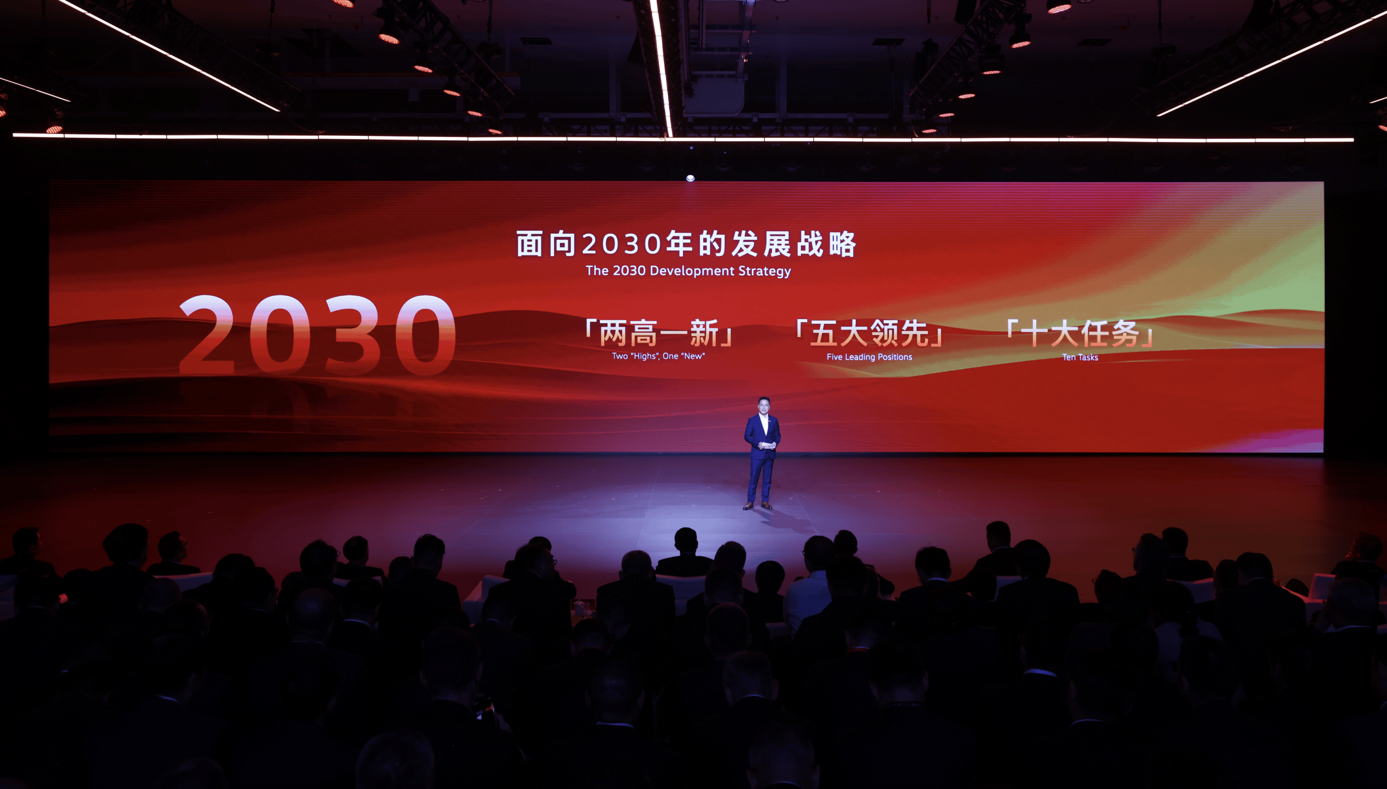 站在累计产销突破3000万辆的新里程碑上,一汽-大众正以创新驱动开启高质量发展新篇章。中国一汽副总经理兼一汽-大众总经理陈彬在战略发布会上宣布,企业将通过"两高一新"总体目标引领转型,即打造新时代高质量发展与高水平开放的新标杆,同步实施"五大领先"战略和十大核心任务。