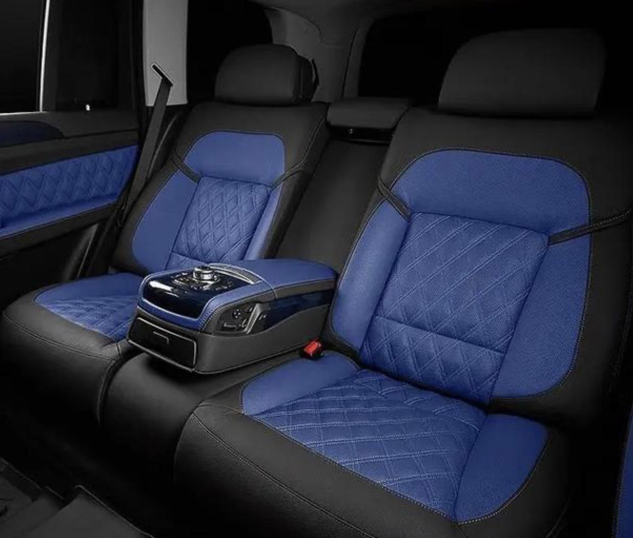 从发布的图片来看,全新FJ酷路泽座舱内部采用了黑色+浅蓝色的真皮材质铺陈,车顶和地毯还加入了麂皮绒材质铺陈,细腻柔软的手感再加上碳纤维装饰面板和金属件的装点,完全没有了越野车粗犷的气息,反而更加高端奢华。中控台采用了标准的T字形结构,环抱四周的浅蓝色氛围灯也烘托出更加高级的座舱氛围。配备了丰田全新设计的多功能方向盘,取消了传统的换挡手柄,取而代之的是怀挡式换挡机构,操控岛变得更加简约,配备了手机无线充电装饰面板、两个标准的杯架、Type-C接口、USB接口,还有排列整齐的大颗粒按键。12.3英寸全液晶仪表、悬浮式的无边框多媒体液晶大屏、12.3英寸后排娱乐屏(带蓝牙耳机)以及14扬声器JBL音响等等。